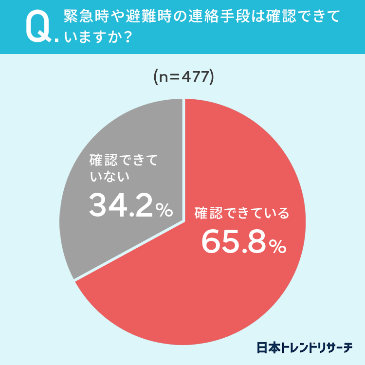 65.8%の方が、緊急時や避難時の連絡手段を「確認できている」と回答しています。