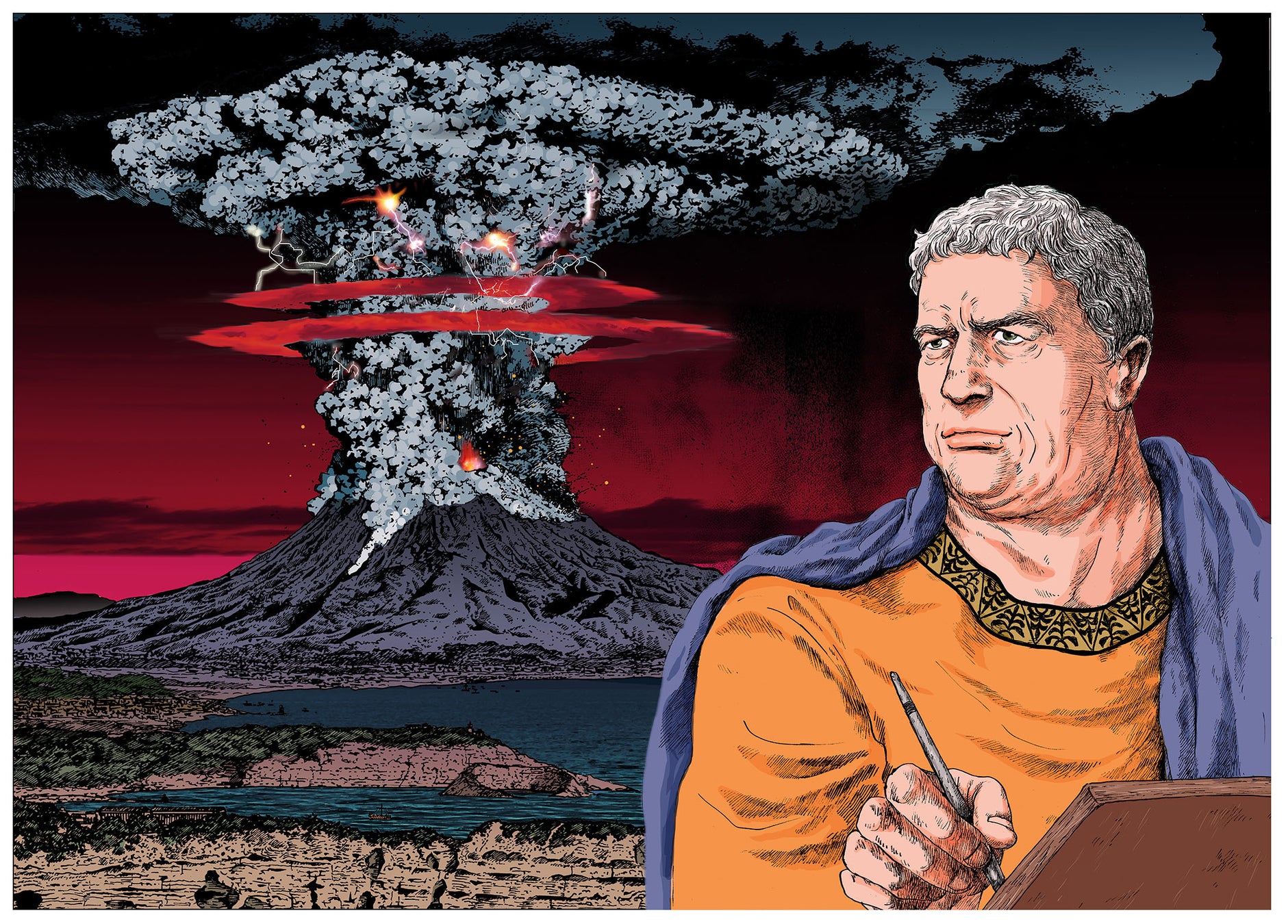 本名は、ガイウス・プリニウス・セクンドゥス。古代ローマを生きた、史上もっとも有名な博物学者。ローマ艦隊の司令長官も務める。自然、動植物、文明などの森羅万象を網羅した『博物誌』を書き遺した。同書は、ヨーロッパで「古典中の古典」として知られ、後世の知識人たちにさまざまな影響を与えた。