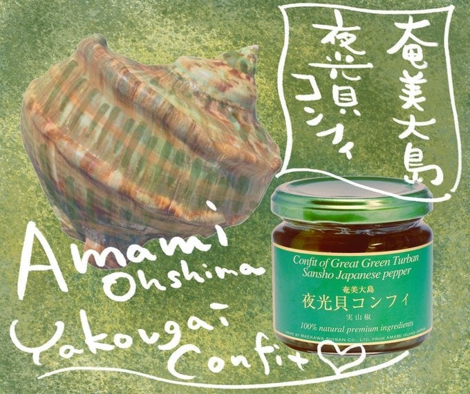 奄美近海の夜光貝のみを贅沢につかい、実山椒・ニンニク・島唐辛子・ローズマリーを加えたオイルでじっくり煮込んだ夜光貝のコンフィは、白ワイン、日本酒、焼酎、ビールなどなんでも合う一品。第54回鹿児島県水産加工品評会「漁業振興大会長賞」、2021かごしま新特産品コンクール「県特産品協会理事長賞」受賞。
