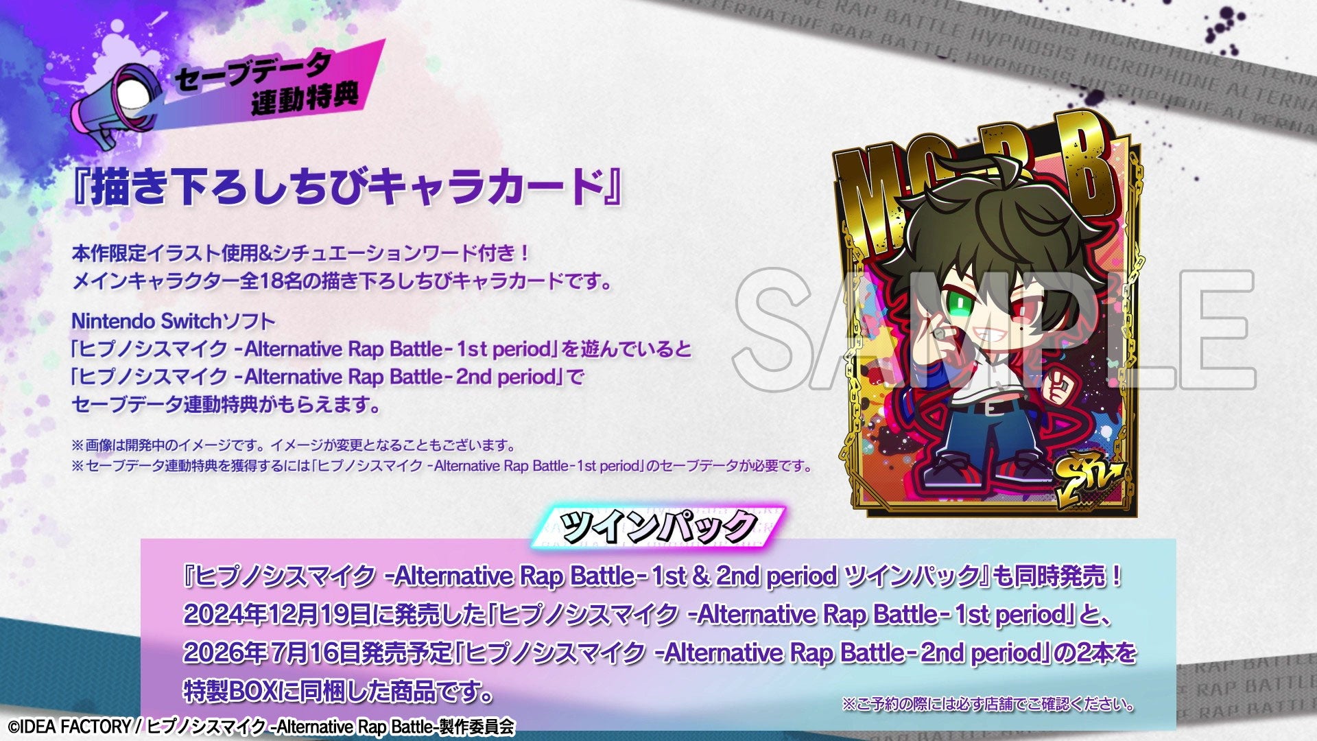 引き続き「ヒプノシスマイク -Alternative Rap Battle-」ならびに「ヒプノシスマイク -Alternative Rap Battle- 2nd period」を何卒よろしくお願いいたします。
