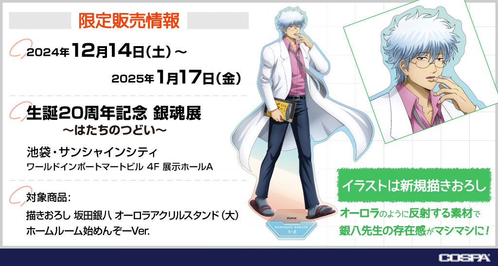 発売日:2024年12月14日(土)~2025年1月17日(金)に池袋・サンシャインシティ ワールドインポートマートビル4F 展示ホールAで開催の〈生誕20周年記念 銀魂展 ~はたちのつどい~〉にて初出し
