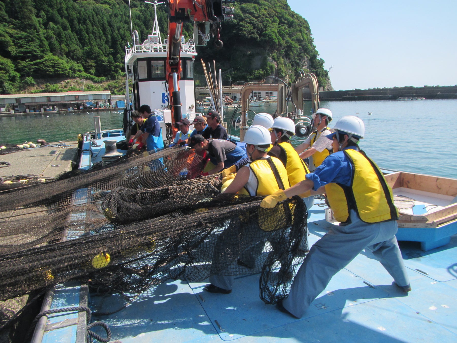 ・定置網、トリガイ養殖など府内の漁業現場での実践的な研修