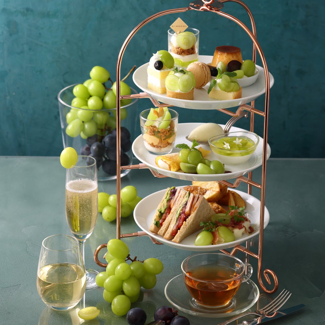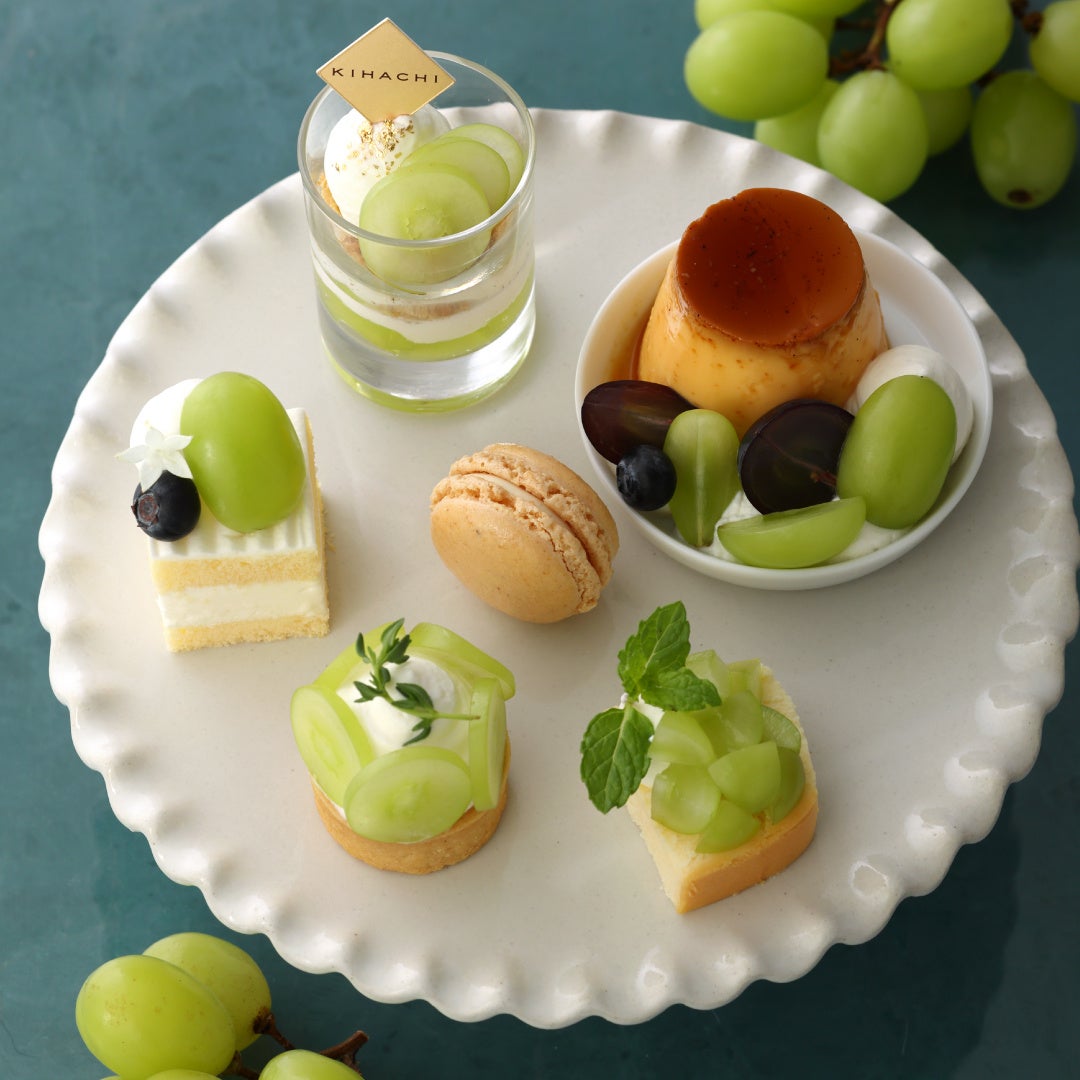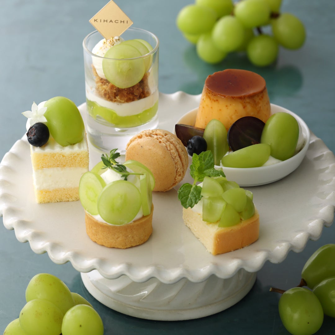 【キハチ 青山本店】爽やかな甘みはじける、シャインマスカットのアフタヌーンティーが登場!貴腐ワイン使用の新作パフェなど13種を提案