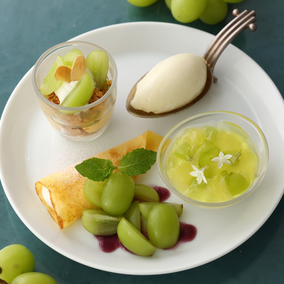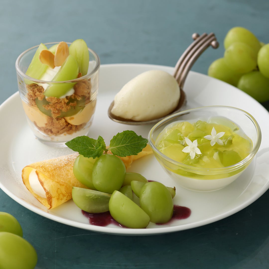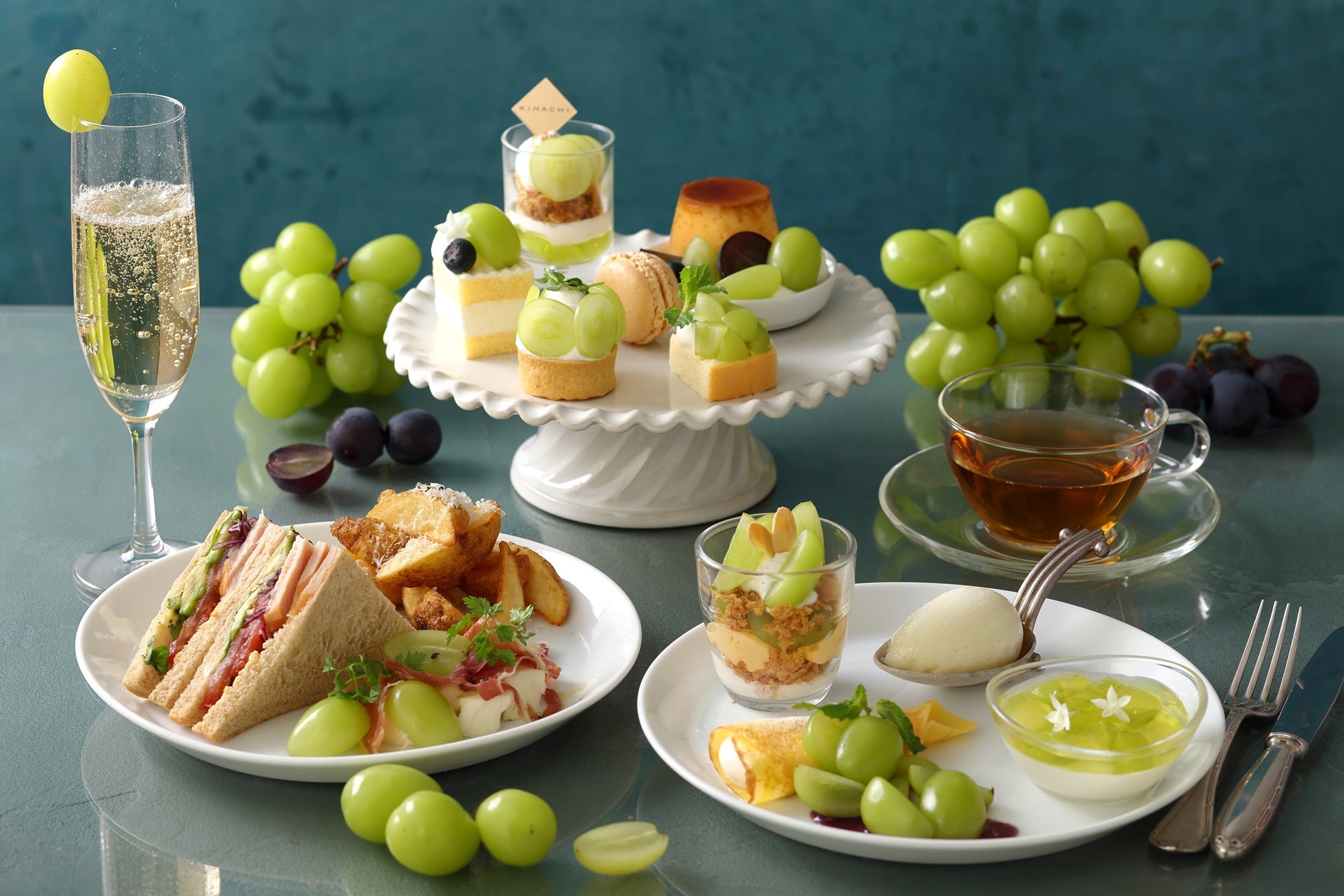【キハチ 青山本店】爽やかな甘みはじける、シャインマスカットのアフタヌーンティーが登場!貴腐ワイン使用の新作パフェなど13種を提案