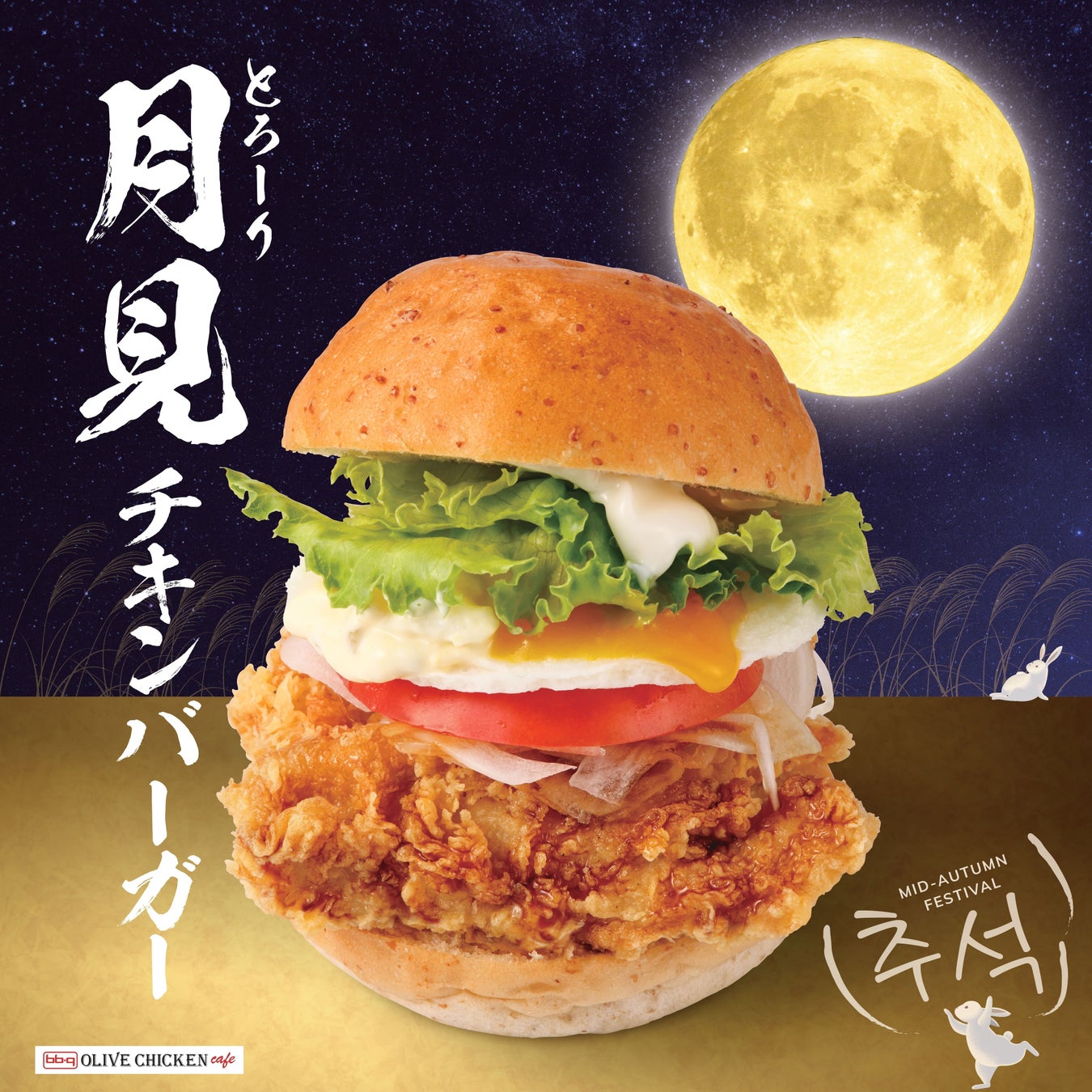 オリーブオイル使用の特製フライオイルで揚げたオリーブチキンフィンガーには、黄身がとろーり目玉焼き風とアカシアはちみつ使用の醬油ベースソイソースに具材感たっぷりのタルタルソースが相性抜群。フレッシュトマトやレタスとともに、全粒粉バンズではさみ込み、とっても贅沢な月見チキンバーガーも、お月見のおともにお召し上がりください。