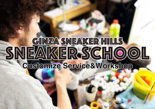 大切なスニーカーを長く愛用するためのお手伝い、履けなくなったスニーカーの再構築や昇華、usedスニーカーに新たな価値の創造を生み出すエリアを設けます。東京のカスタムスニーカーを牽引する「OnebyOne=(ワンバイワンイコール)」と手を組み、【CUSTOM】【Repairs &Cleaning】【School &Experience】をキーワードに、カスタムスニーカーカルチャーを銀座より発信します。