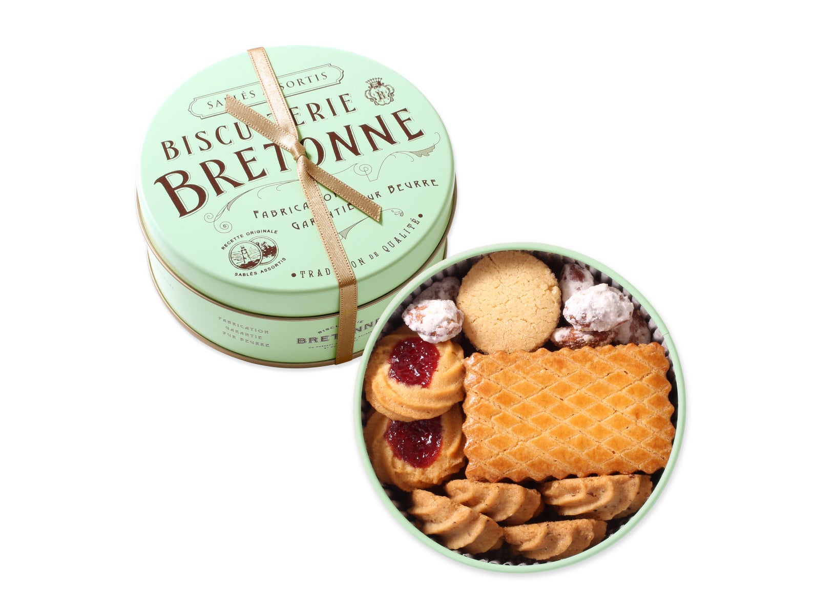 発酵バターの風味が広がるサブレにゲランドの塩の塩味がアクセントの塩キャラメルをサンドした「サブレ・ブルトンヌ サンド〈塩キャラメル〉」や、香ばしく濃厚なジャンドゥーヤチョコレートを合わせた繊細な食感の「コキーユ・ジャン ドゥーヤ」の新作の2種に加え、バニラの香りが広がる「サブレ・バニーユ」、苺のコンフィチュールをしぼったお花のようなジャムクッキー「サブレ・フレーズ」、糖衣がけしたカリッと食感のアーモンド「プラリーヌ・オ・アマンド サレ」の5種の美味しさを詰めたアニバーサリー限定のクッキー缶。通常のクッキー缶ではお楽しみいただけない、今だけの贅沢な詰め合わせになっています。今回、缶のデザインはブルトンヌのアイコンでもある定番のクッキー缶(グリーン缶 )のデザインを踏襲し、可愛らしい丸型に落とし込んだ、ブルトンヌらしさあふれるデザインとなっています。一缶に詰まったこだわりをぜひお楽しみください。