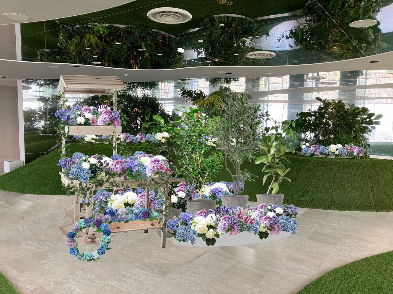 期間中は、館内の人工芝が敷かれた「てんぼうの丘」エリアで、梅雨を象徴するアジサイやクレマチスなどの花々を観賞いただけるほか、親子で楽しめる様々なワークショップを実施します。