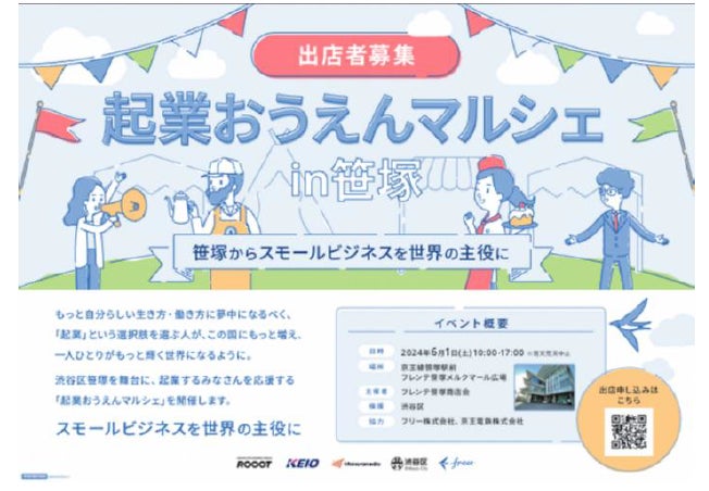 本マルシェを通して、現在笹塚エリアを中心に事業を展開している個人事業主や、今後事業を展開しようとしている個人事業主などに対して、マルシェによる出店機会の創出により支援することで、個人事業主の起業や開業時におけるニーズを検証します。京王沿線において、様々な方法で、スモールビジネスや個商いを支援することで、エリアのスモールビジネスの活性化を通じた地域の価値向上を目指していきます。