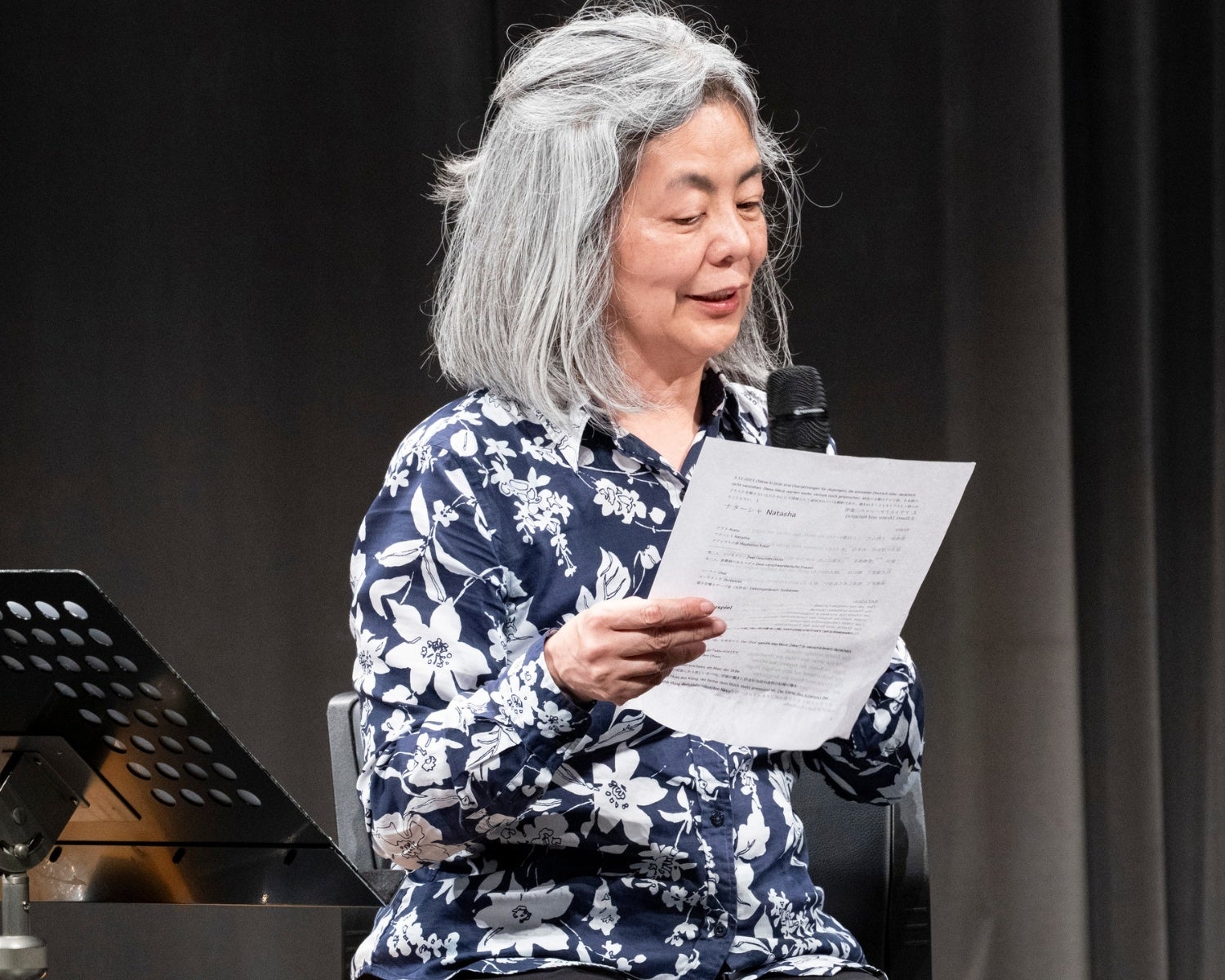 そして『海潮音』の一節を朗読してその翻訳術を分析しながら、それに影響されたという『ナターシャ』冒頭の一節も朗読。未発表の『ナターシャ』の作家自身の朗読に、客席もくぎ付けになりました。言葉のひとつひとつがどんな風に選ばれたのか、それがどんな音楽となって響くのか、期待が募ります。