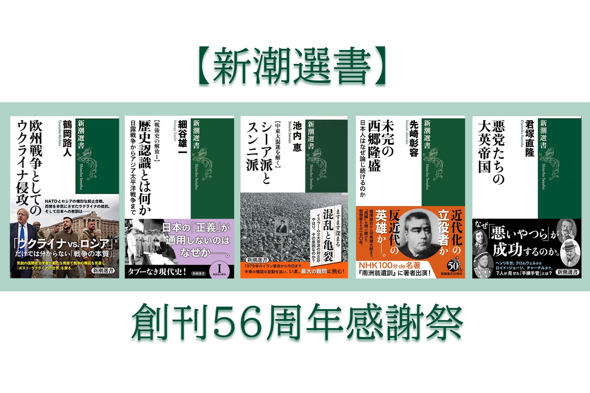 イスラーム2大宗派の対立の深層に迫る『【中東大混迷を解く】 シーア派とスンニ派』(池内恵)、日本が戦勝国から敗戦国へ転落する過程を辿り直す『戦後史の解放I 歴史認識とは何か―日露戦争からアジア太平洋戦争まで―』(細谷雄一)、辺境の島国イギリスを世界帝国へ押し上げた7人の手練手管を描く『悪党たちの大英帝国』など、新潮選書の魅力的な作品を期間限定価格で展開します。