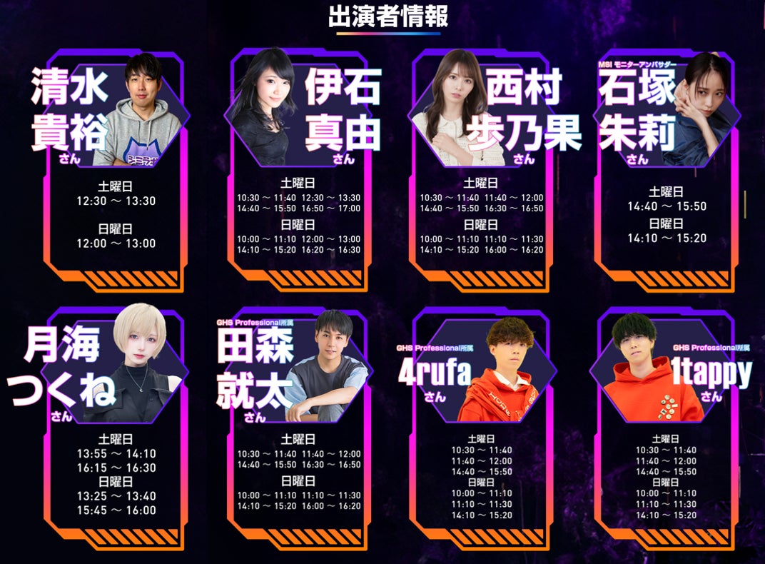マルチタレントの「西村歩乃果」さん、「石塚朱莉」さん、『GHS Professional』所属「1tappy」さん、「4rufa」さんの