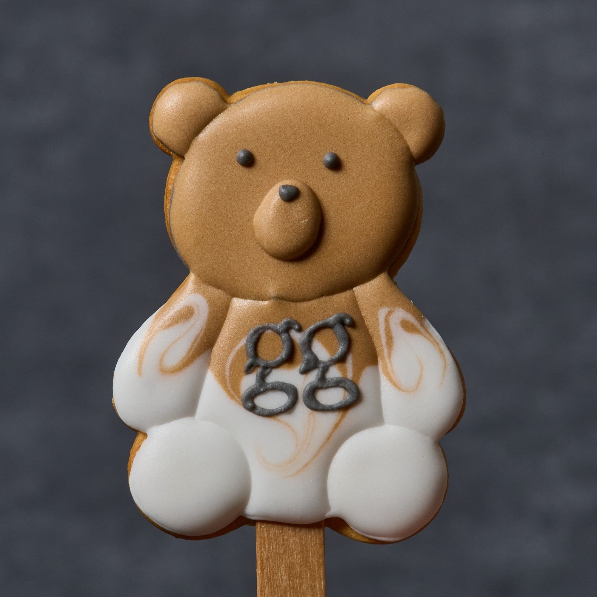 お店で販売しているくまボトルのカフェラテをイメージしたアイシングクッキー。食べやすいスティック付きで、ギフトにもおすすめです。