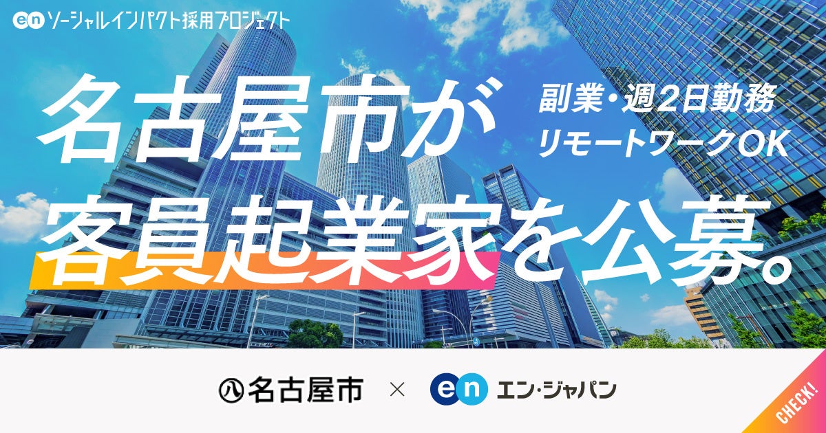 エン・ジャパン株式会社(本社:東京都新宿区、代表取締役社長:鈴木孝二)は、2025年2月10日(月)より、名古屋市の『ソーシャルインパクト採用プロジェクト』(https://www.enjapan.com/)を開始しました。当社が運営する採用支援サービスを通じ、副業勤務の客員起業家を公募します。下記、本プロジェクト概要と、名古屋市経済局 イノベーション推進部 スタートアップ支援課長 鷲見氏のコメントも紹介します。
