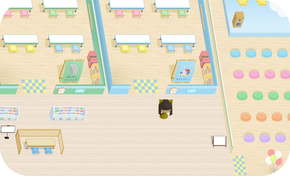 アバターを動かしてフロアを探検したり、お友だちに話しかけたりして、「どこでも教室」を楽しもう!