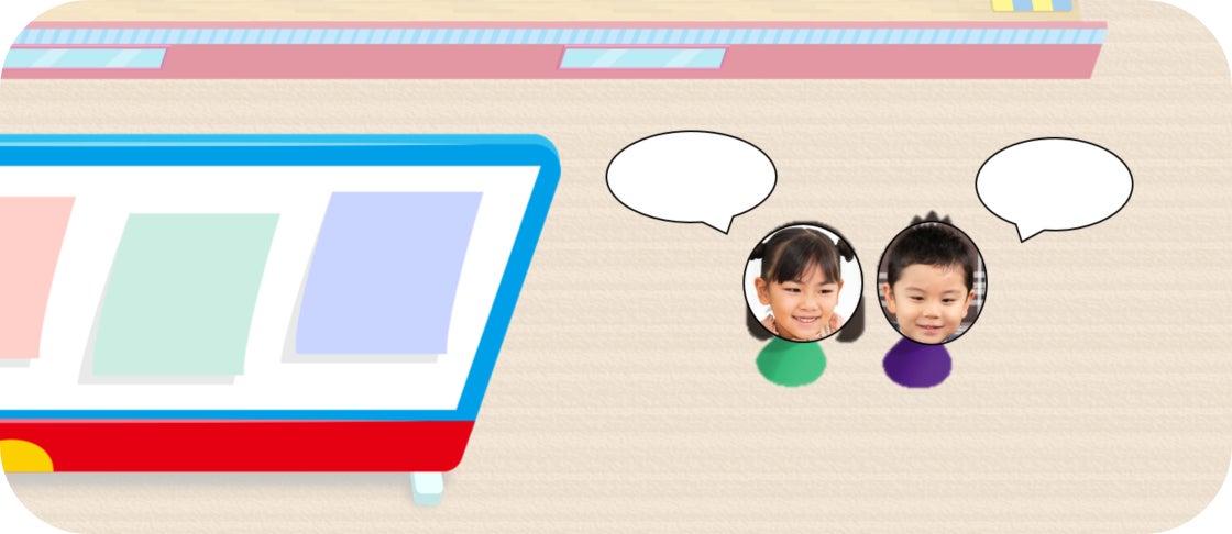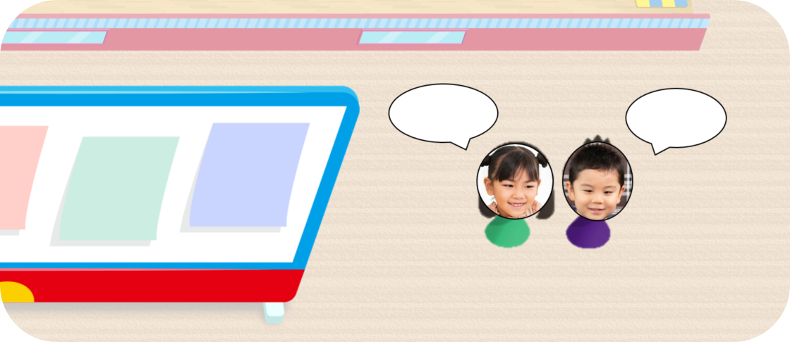 新しい空間を使用した「どこでも教室」ではお子さまがアバターとして通学します。「どこでも教室」には、メインキャラクターのドラえもんとドラミちゃんが登場し、お子さまにメッセージを発信しています。またお子さまと講師はもちろん、お子さま同士も会話(ビデオ通話)することができます。先生やお友だちの存在を感じながら、授業やイベントなどの楽習活動に取り組むことができます。