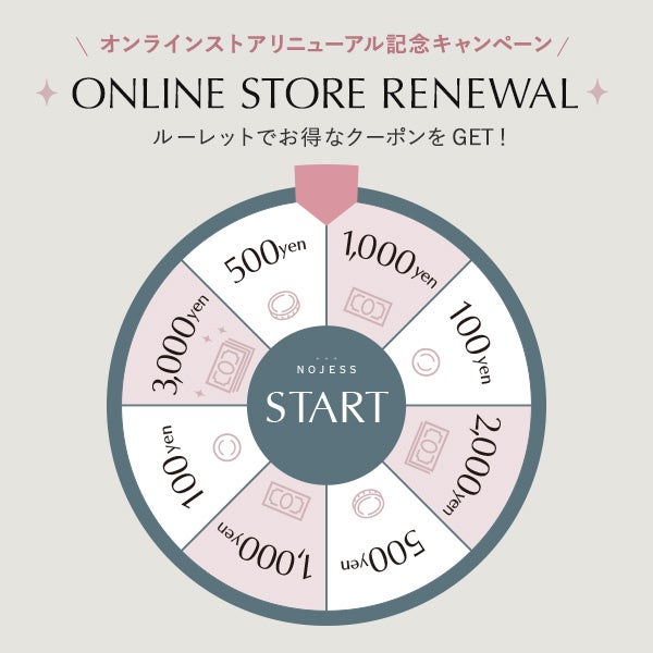 その場で当たる、お得なクーポンルーレット!最大3,000円分の当選チャンス!!ノジェス 公式オンラインサイトを覗いてみよう!
