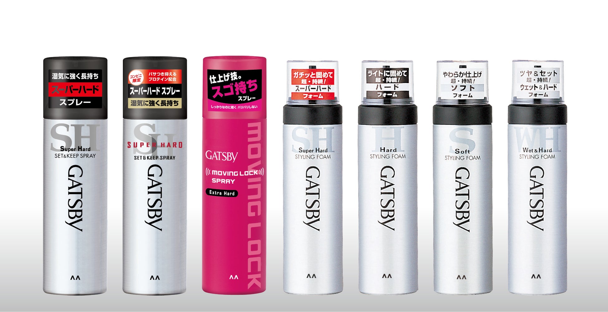 今回軽量化の対象となる商品はメンズコスメブランド「ギャツビー」から展開しているヘアスプレーとヘアフォーム計7品です。セット&キープスプレーやスタイリングフォームシリーズは発売から35年以上経つものもあるロングセラー商品で、多くのお客様にご愛顧いただいており、ギャツビーは男性用ヘアスプレー市場※3、男性用ヘアフォーム市場※4においてブランドシェアNo.1を獲得しています。