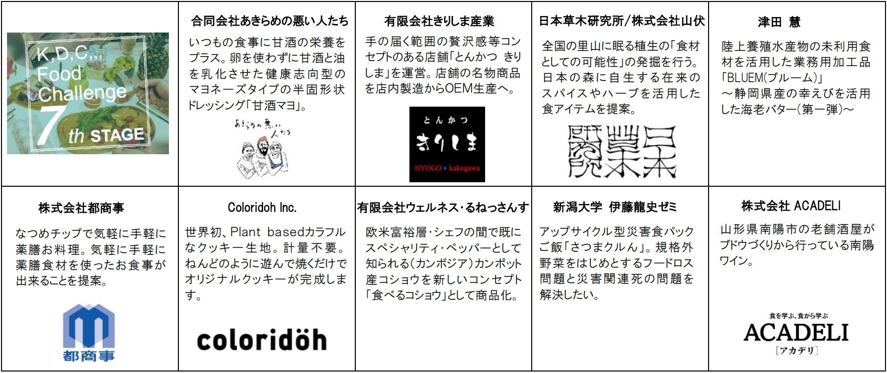 第7回「K,D,C,,, Food Challenge」結果報告!過去最多 27 組エントリー、マッチング 34 組成立!