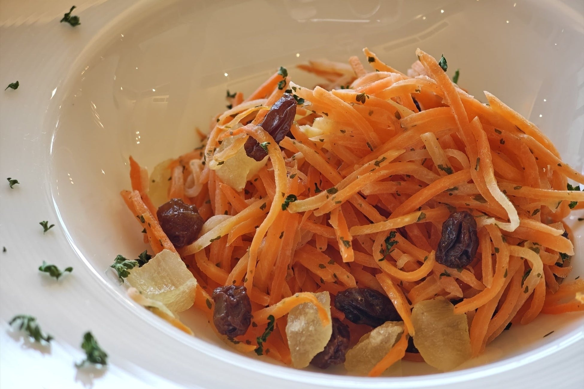 ディナーコース:春にんじんのラペ(前菜)/春にんじんのフラン(メインディッシュ添え)