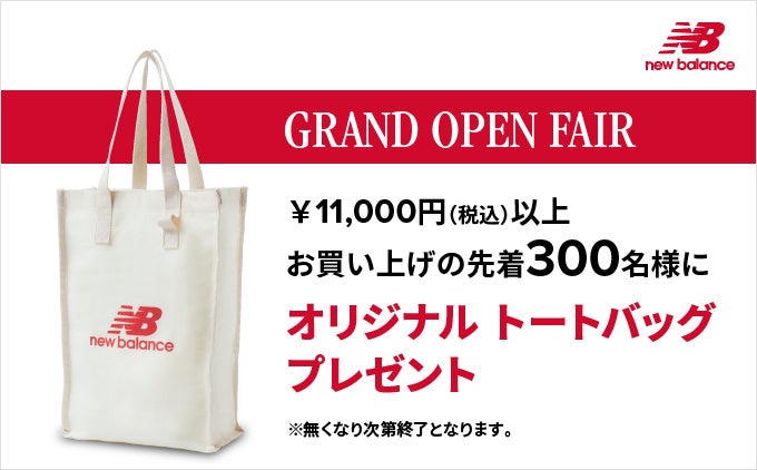 グランドオープンを記念し、11,000円(税込)以上お買い上げの先着300名様に、オリジナルトートバッグをプレゼントいたします。※無くなり次第終了となります。