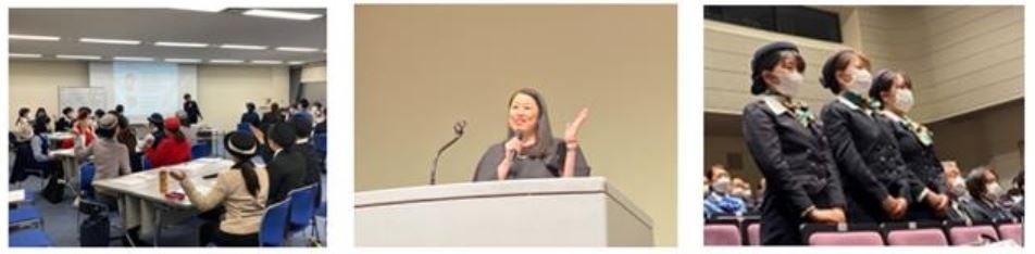 今回、基調講話では元JRの車内販売員で、一往復の売上が通常の販売員が数万円程度のところ、数十万円を毎回売り上げていた茂木久美子氏が務めました。販売に大切なことはテクニックもあるものの、何よりもお客様の気持ちになって考えることが大切であり、お客様の表情や声をかけるタイミングなどちょっとした気遣いや振る舞いで顧客満足度に大きな差が出ることについて具体例を挙げながら説明され、茂木氏と同様に車内でお客様と正対するガイドの方々がメモを取りながら講話を聴いている姿が印象的でした。