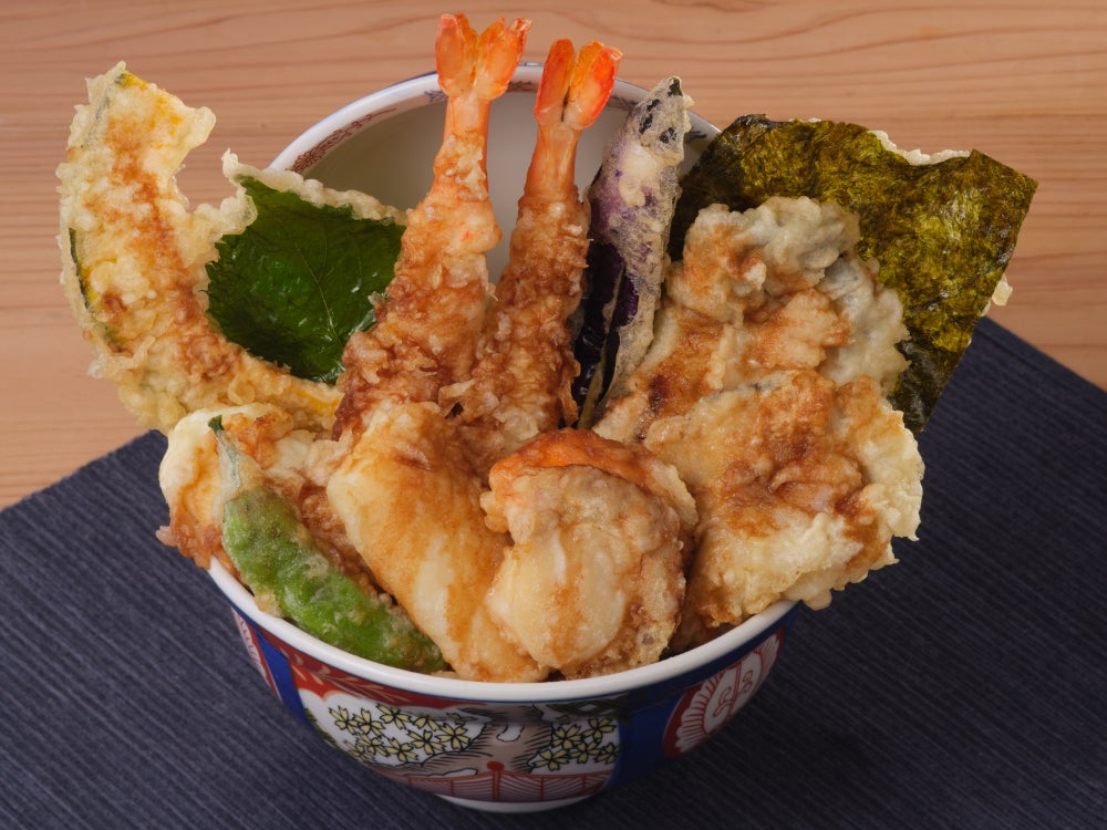 天ぷらは、ご自宅で用意をするにはひと手間もふた手間もかかります。「大粒!牡蠣と帆立の冬天丼」は、厳選した広島県産の牡蠣と北海道噴火湾産の帆立をはじめ、海老・海苔・かぼちゃ・大葉・茄子・いか・温泉玉子・ししとう、全10種類の食材を一度に味わえる天丼に仕立てました。