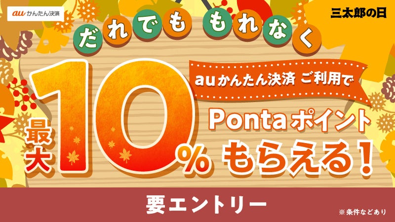 11月もおトクな3日間を!三太郎の日に「auかんたん決済」ご利用で最大10%Pontaポイント還元!