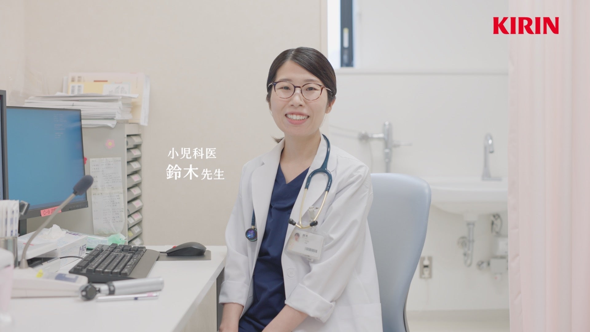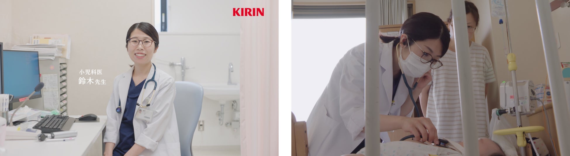 小児科医の鈴木先生に密着し、先生が人々の健康を支えている環境や思いを通じて、健康を守る人への感謝とともに、鈴木先生を支えたいキリンの思いを伝えます。二児の母でもある鈴木先生は、自分のことは後回しで睡眠不足になってしまうなど不規則な生活の中でも、日々人々の健康を守り患者さんの回復を心から願っています。そんな鈴木先生へのキリン思いを本CMを通じて伝えます。