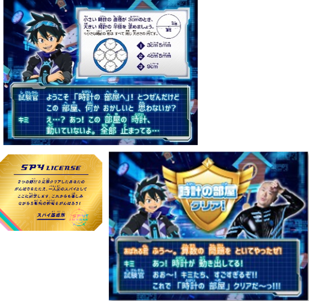 見事クリアするともらえるスパイライセンスや、あばれる君からの特別メッセージがお子さまの達成感を高め、さらなる学習意欲を引き出します。