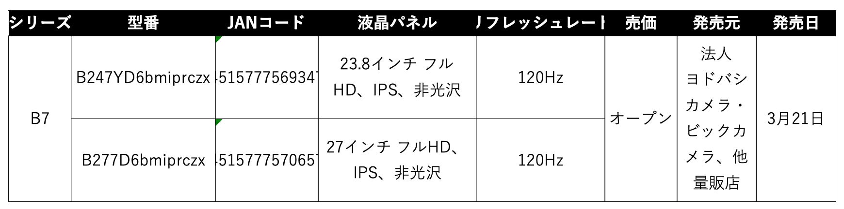 日本エイサー株式会社(本社:東京都新宿区、代表取締役社長:ボブ・セン)は、Acerの統合的なサステナビリティに考慮した取り組みを具現化する製品シリーズVero(ヴェロ)より、 B7シリーズの23.8インチモニター「B247YD6bmiprczx」、27インチモニター「B277D6bmiprczx」の計2機種を、法人市場向けおよび一般向けに発売開始しました。法人のお客様には法人向サイトBusiness DNAから、一般のお客様にはヨドバシカメラ、ビックカメラ、他量販店から随時発売いたします。