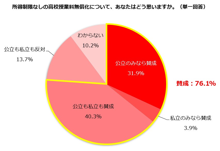 【高校授業料無償化】“所得制限なし”を主婦層はどう思う?「賛成」76.1%「公立も私立も反対」13.7%