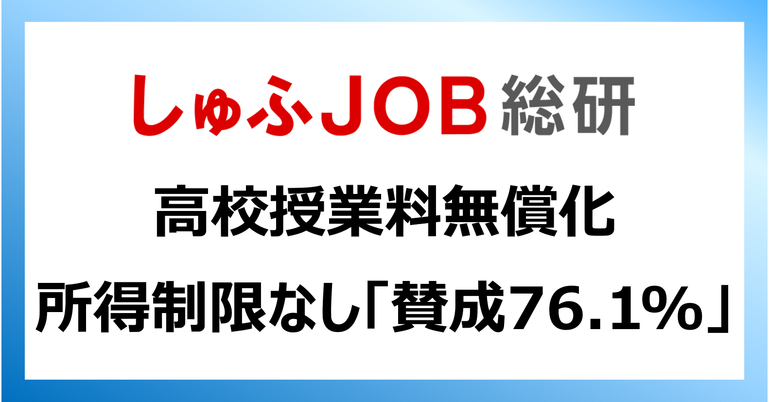 仕事と家庭の両立を希望する主婦・主夫層の実情や本音を探る調査機関『しゅふJOB総研』(運営会社:株式会社ビースタイル ホールディングス 本社:東京都新宿区、代表取締役:三原邦彦)は『高校授業料無償化』をテーマに、仕事と家庭の両立を希望する主婦・主夫層にアンケート調査を行いましたので以下にご報告します。(有効回答数:746件)
