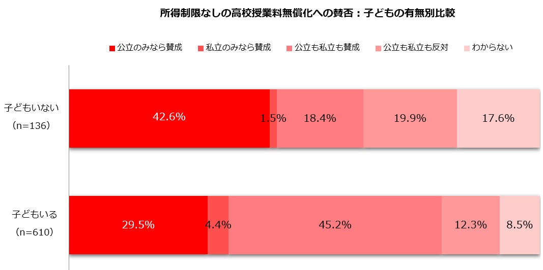 3.所得制限なしの高校授業料無償化への賛否:子どもの有無別比較