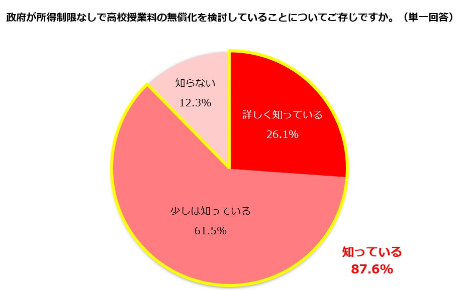 1.所得制限なしでの高校授業料無償化の検討について「知っている」87.6%