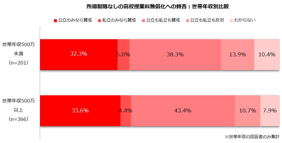 <所得制限なしの高校授業料無償化について「公立も私立も反対」と回答した人>
