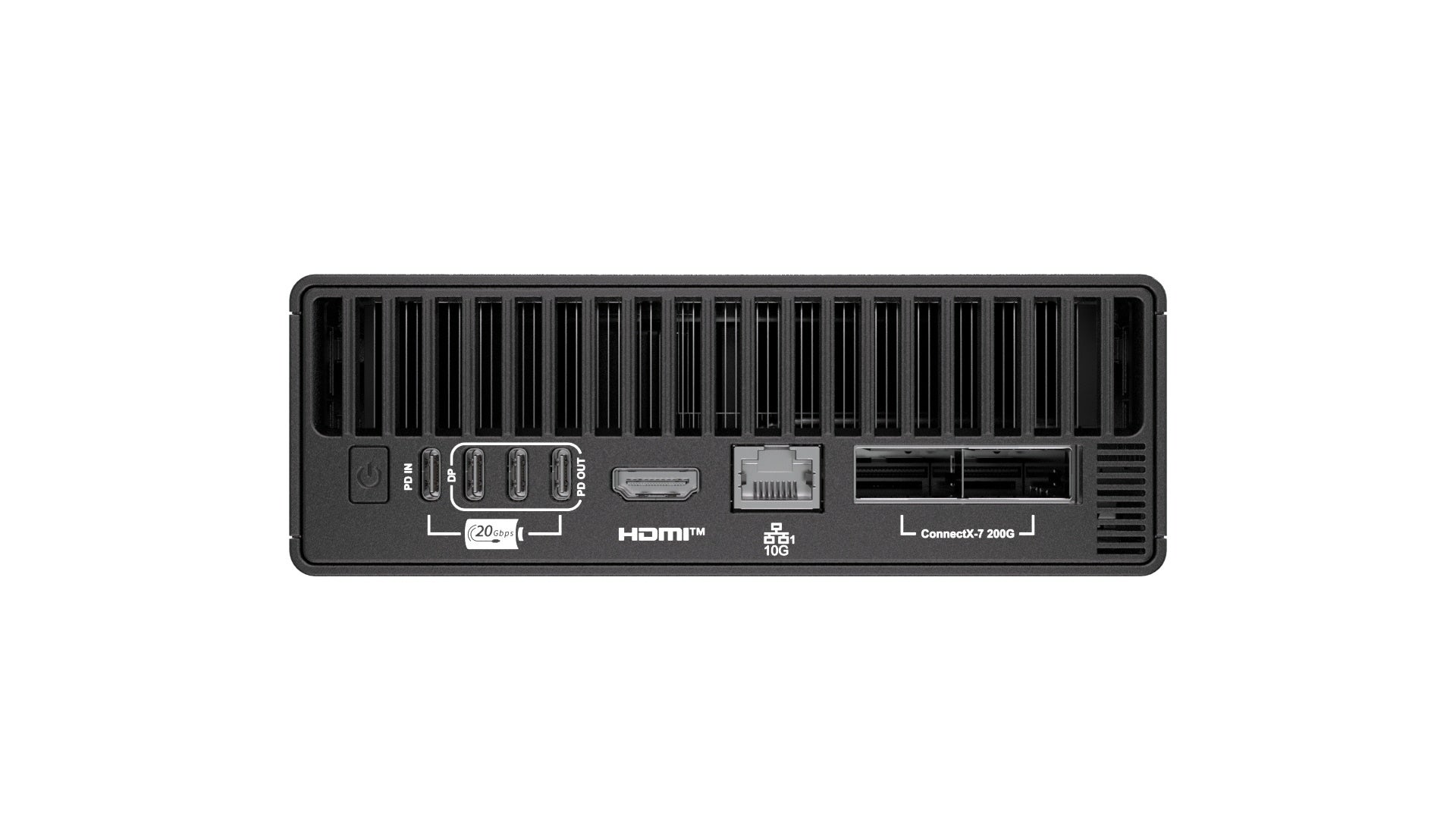 USB 3.2 Type-C×4(1ポートは本体電源供給に使用)、10GbE RJ-45コネクタ、NVIDIA ConnectX-7 Smart NIC、Wi-Fi 7、Bluetooth 5.4を搭載しています。