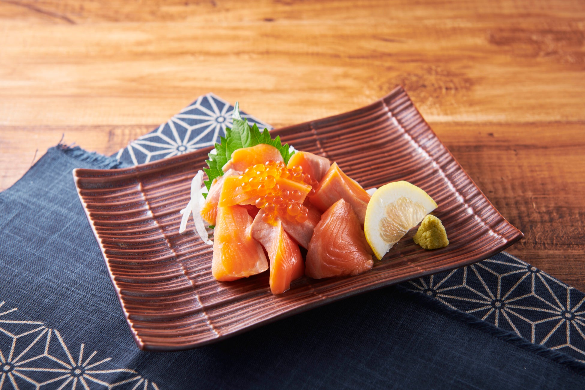 サーモンの天盛りいくら乗せ599円(税込658円)