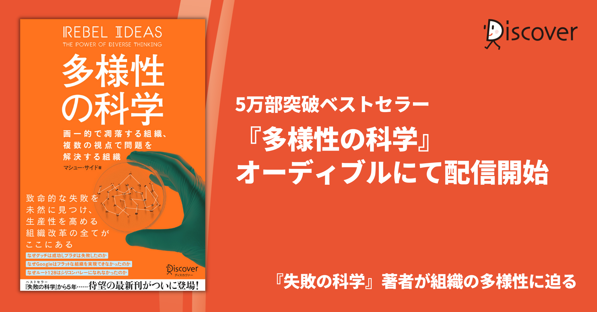 株式会社ディスカヴァー・トゥエンティワン(本社:東京都千代田区、取締役社長:谷口奈緒美)は、2022年12月23日に、『多様性の科学』(マシュー・サイド 著)のオーディオブック版を、オーディブルにて配信開始しました。