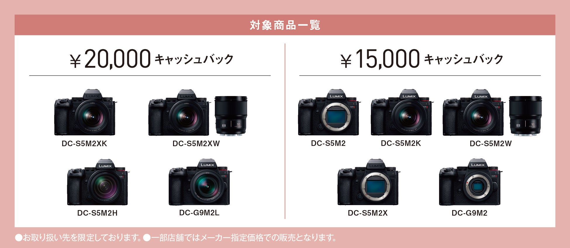 (DC-S5M2W、DC-S5M2K、DC-S5M2H、DC-S5M2、DC-S5M2XW、DC-S5M2XK、DC-S5M2Xのいずれか1台、DC-G9M2L、DC-G9M2のいずれか1台、最大2台までのご応募とさせていただきます。)