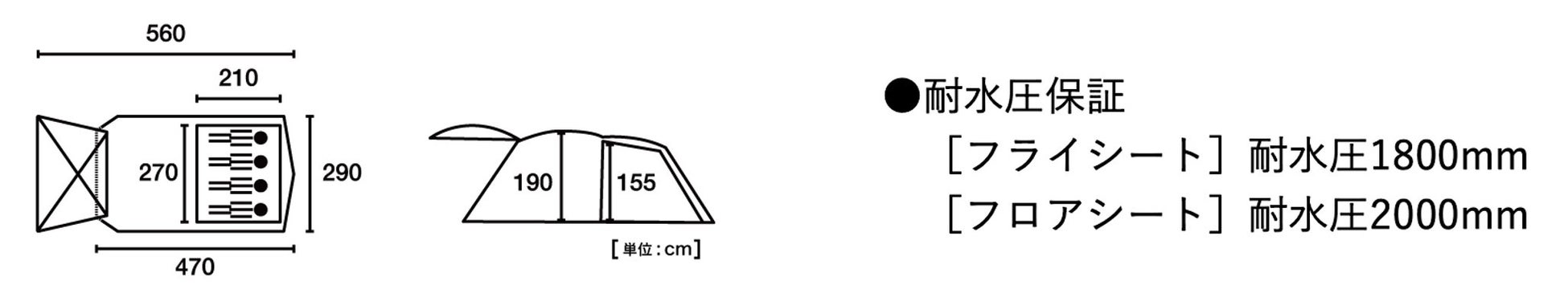 本アイテムは、大人4人が快適に過ごせる、リビングと寝室が一体化した2ルームテントです。寝室側の両サイドに開放可能な窓を設けることで、高い通気性と開放感のある空間を実現しました。インナーテントは着脱簡単な吊り下げ式のため、取り外せば大型スクリーンタープとしても使用できます。