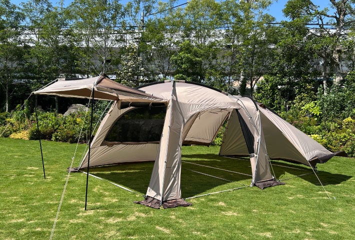 寝室に大型窓で爽やか度UP!4人が快適にすごせる2ルームテント「Tradcanvas PANEL オーニングドゥーブル L-BF」新発売!