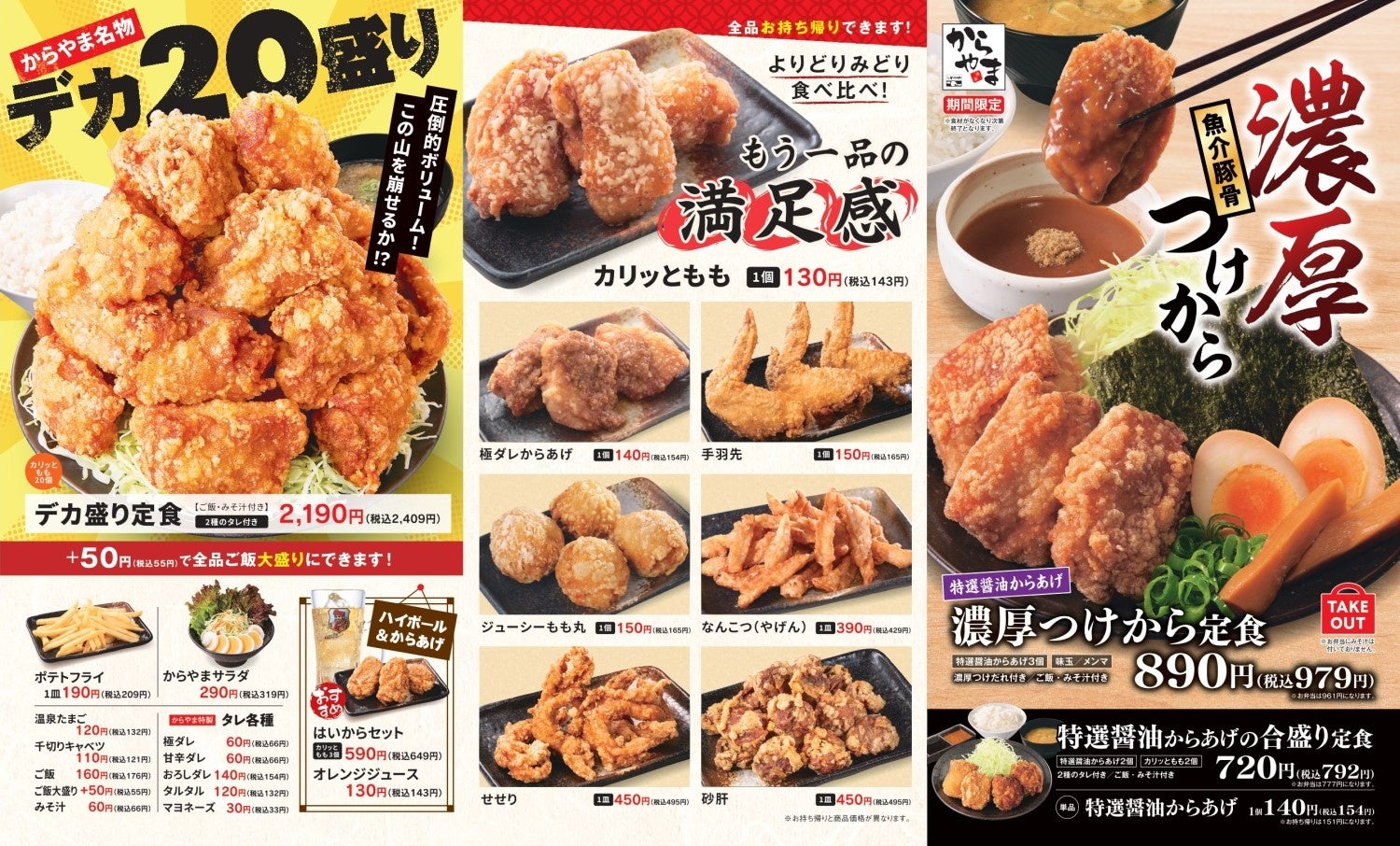 とんかつ専⾨店「かつや」などを展開するアークランドサービスホールディングス株式会社の⼦会社、エバーアクション株式会社(本社:東京都千代⽥区/代表:渡部 貴、以下当社)は、2024年10⽉25⽇(金)より国内の「からやま」にて「濃厚つけから定食」を、「からあげ縁」にて「特選醤油からあげ」を期間限定で販売開始いたします。