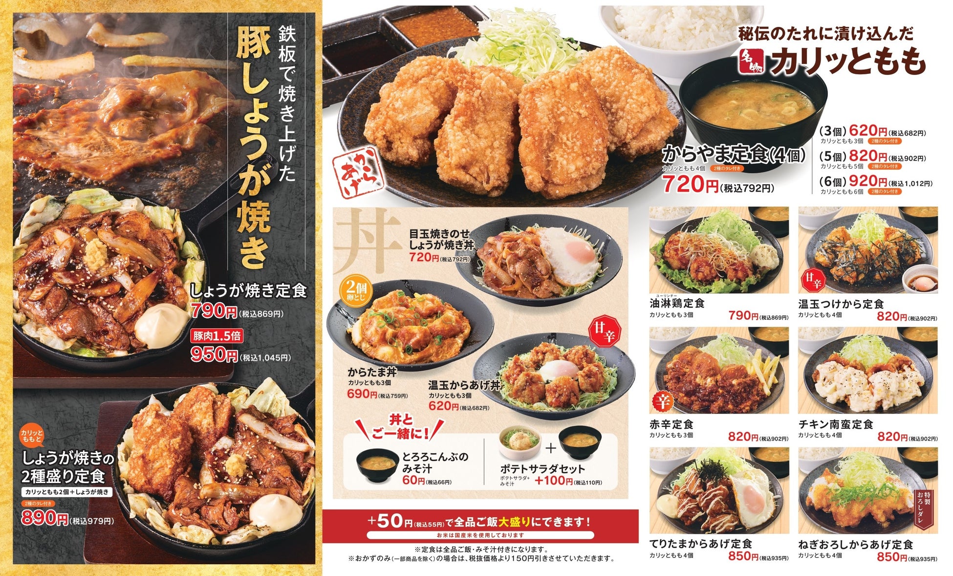 2024年7月、新たなご飯のおかずの選択肢として、生姜のきいた特製濃厚ダレを絡め高温の鉄板で焼き上げた「しょうが焼き定食」が仲間入り。
