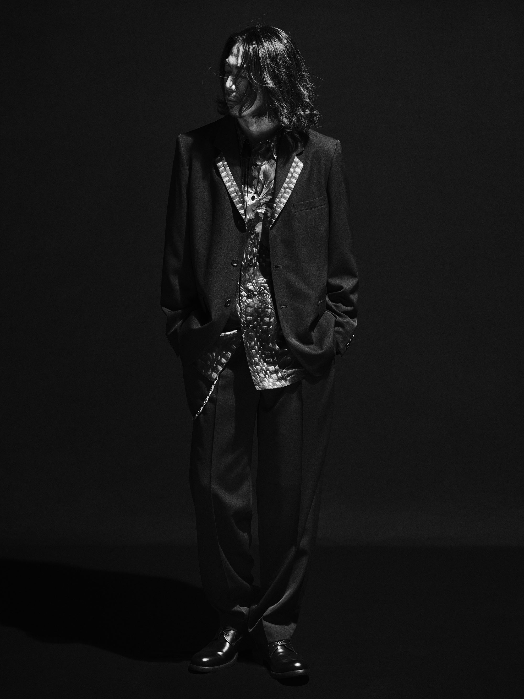 作品の中で印象を残したシルエットを受け継ぐジャケットやパンツを中心に、大胆なプリントを施したシャツやネクタイなどを展開します。