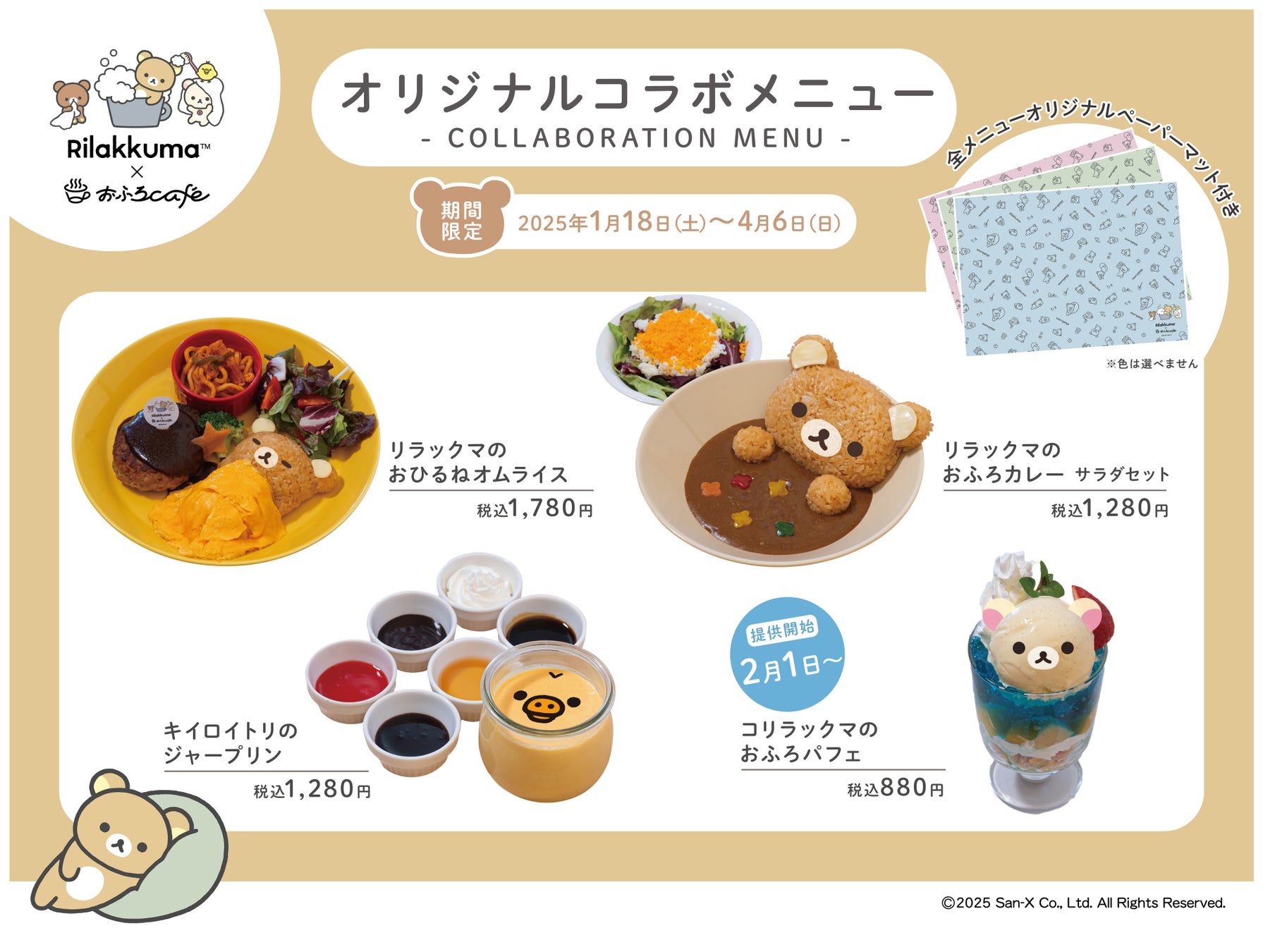 リラックマ × おふろcafe コラボ「おふろあがりのごゆるりタイム」が1月18日スタート! リラックマ風呂やカフェメニュー、グッズが登場