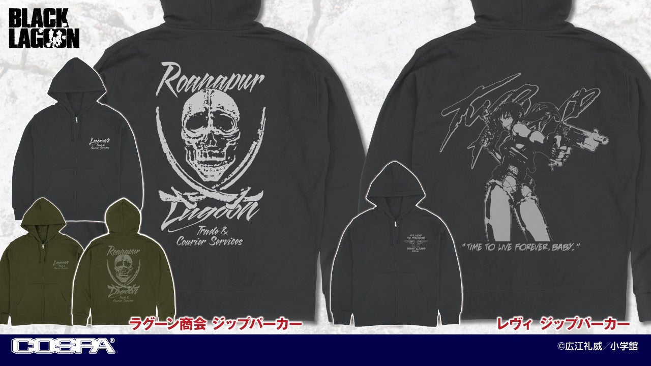 『ブラック・ラグーン』より、「ラグーン商会」「レヴィ」など作品の世界観を楽しめるジップパーカー5種がCOSPA(コスパ)から登場。