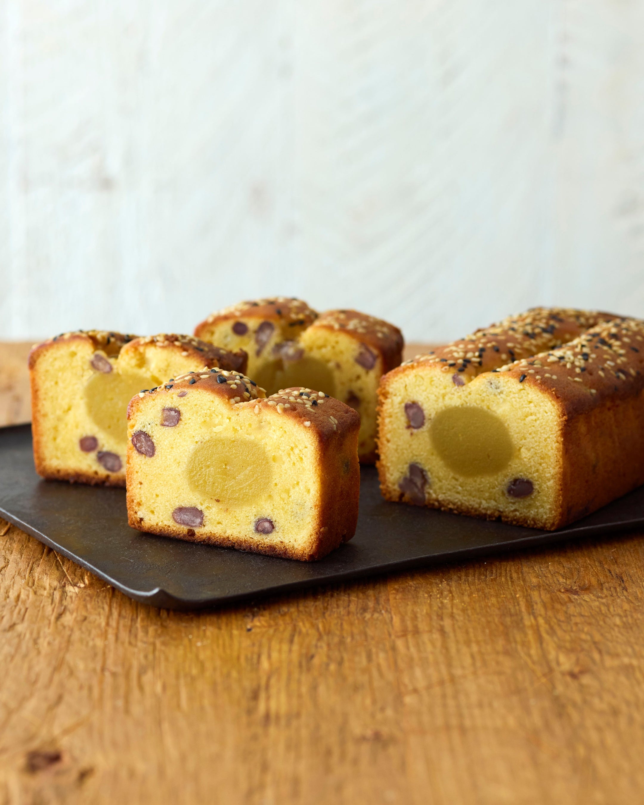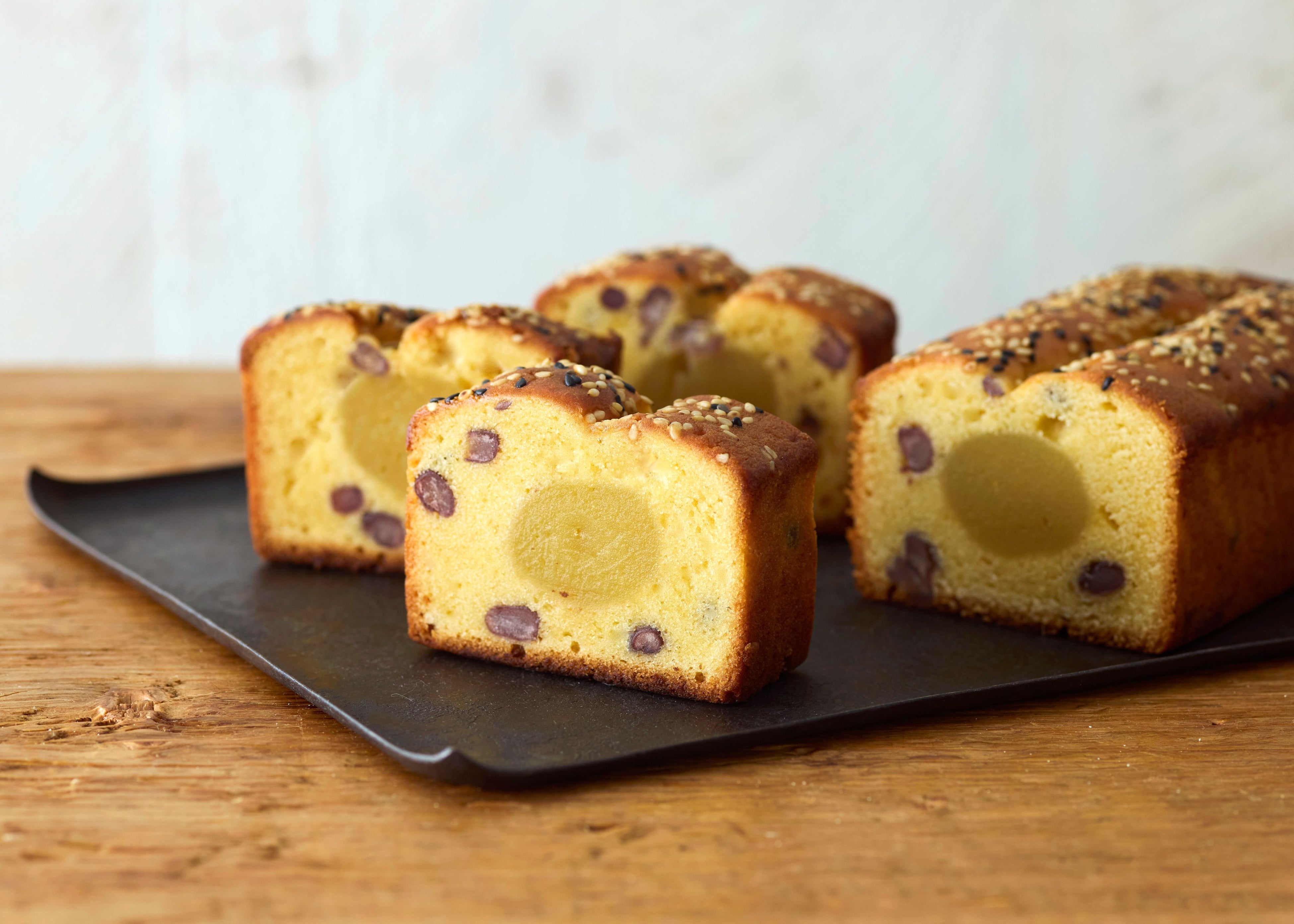 北海道産小豆を練り込んだ生地に、舟和のさつまいもペーストを入れて丁寧に焼き上げました。国産のバターと小麦の風味が広がるくちどけのよいパウンドケーキにさつまいもの優しい甘みが重なる上品な味わいです。