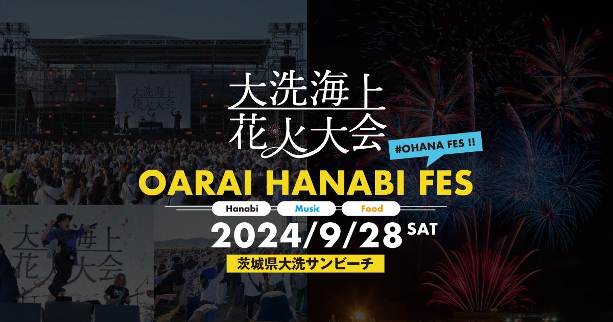 著名アーティスト出演による音楽ライブ、内閣総理大臣賞を最多21回受賞した日本一の花火師「野村花火工業」による過去最多15,000発の花火、キッチンカーによる多彩なグルメが楽しめる「OARAI HANABI FES」が2024年9月28日(土)に開催されます。