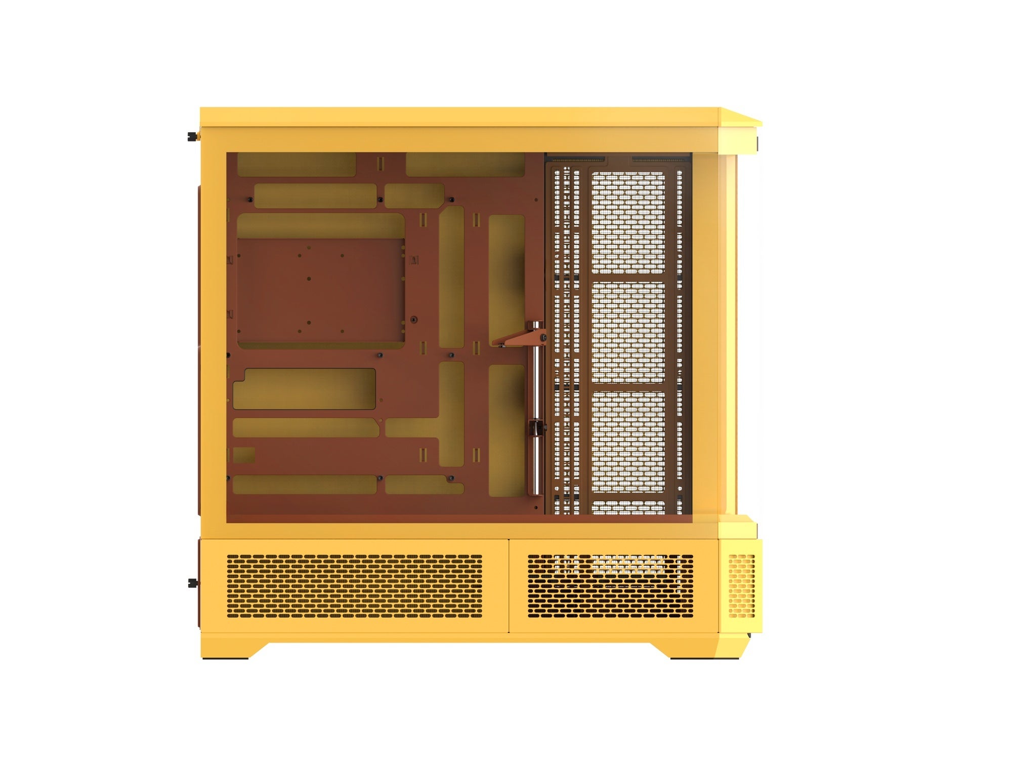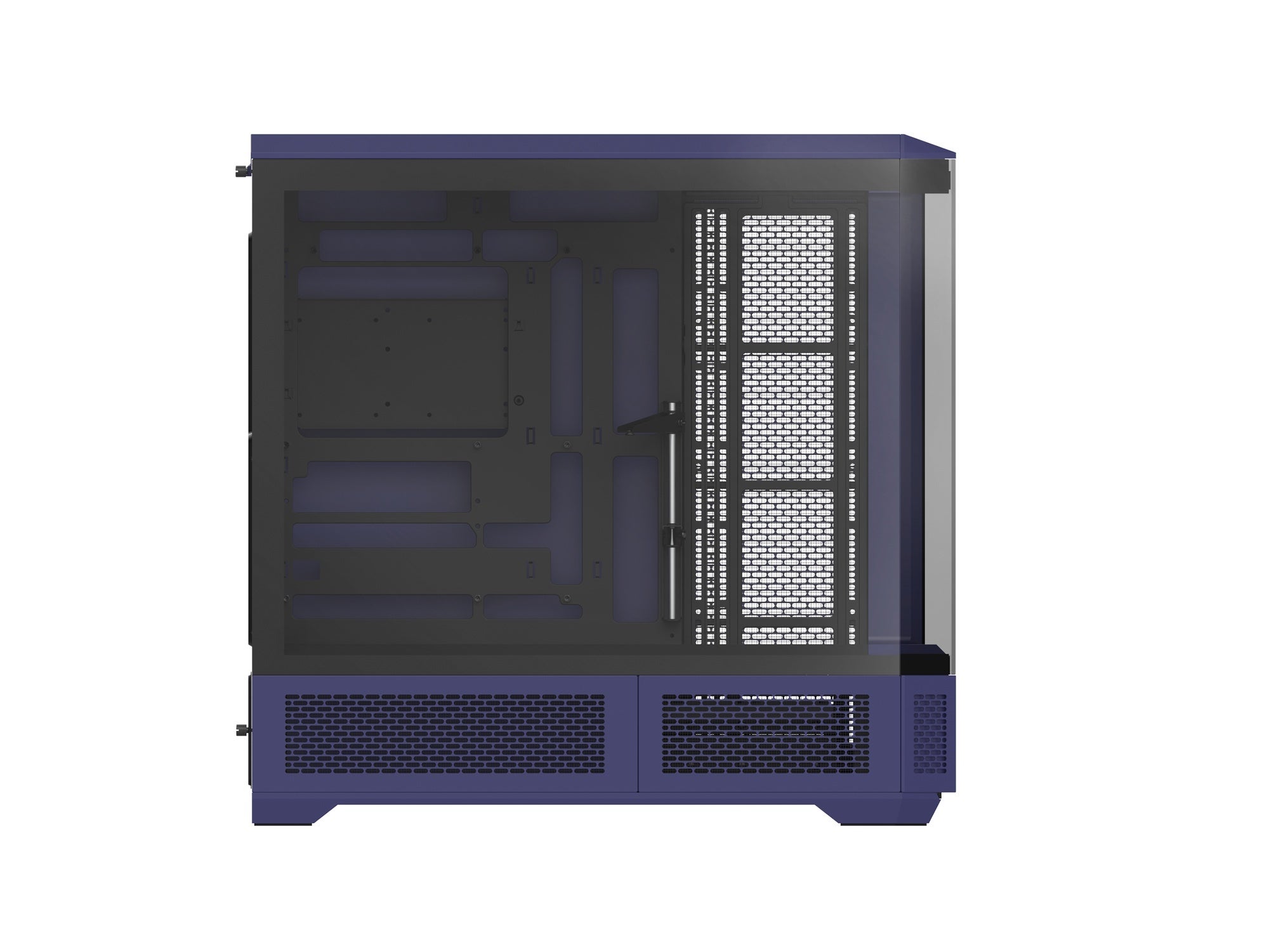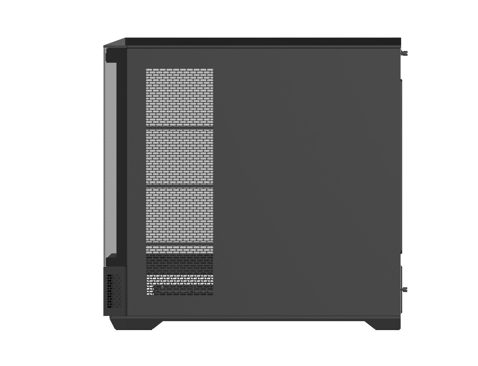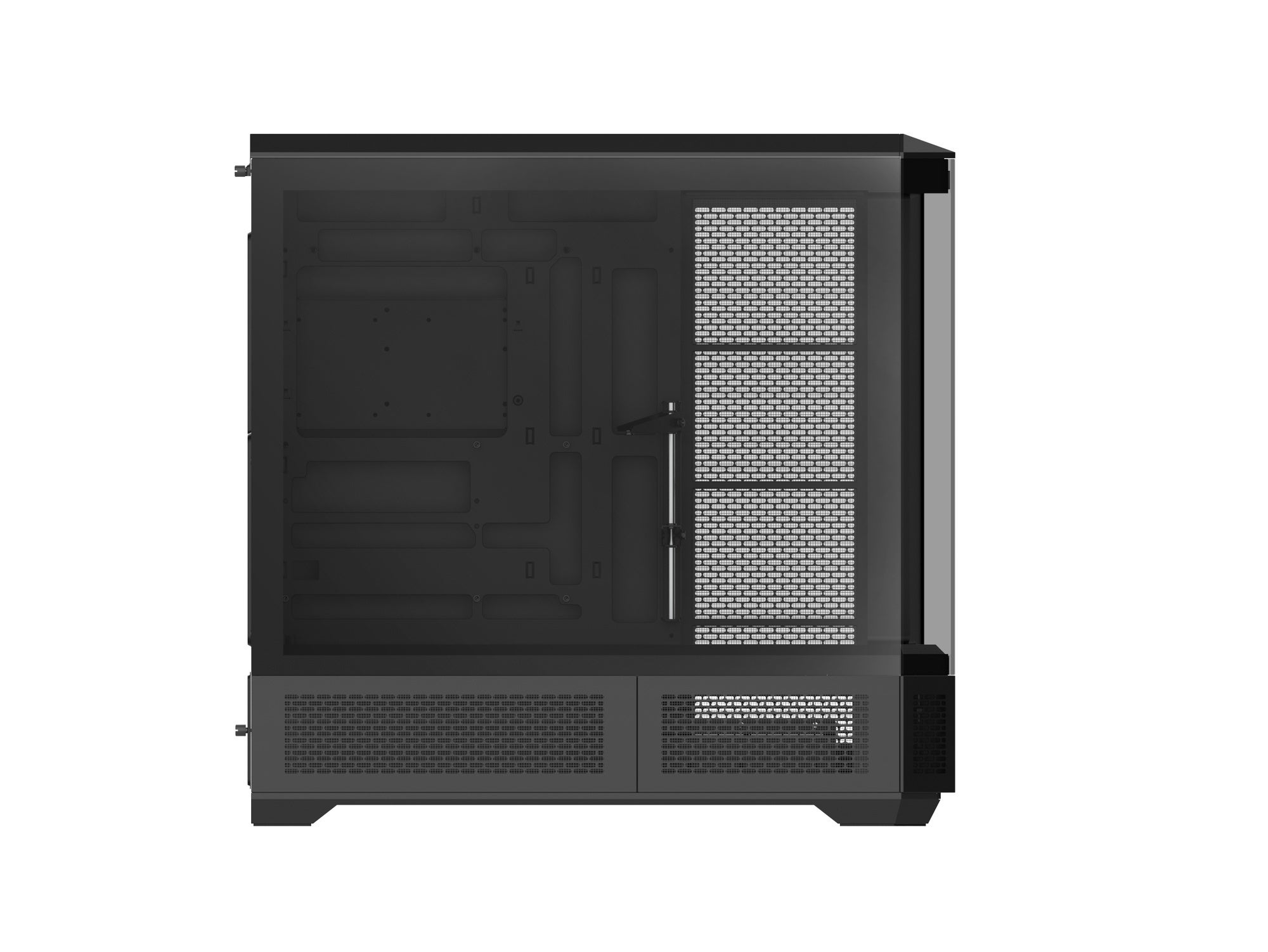 フロントと左サイドに4枚の強化ガラスパネルを備えたピラーレスデザインを採用。背面コネクタ設計のMSI、GIGABYTE、ASUS社製マザーボードに対応しており、自作PCならではの豊かなドレスアップを楽しめます。